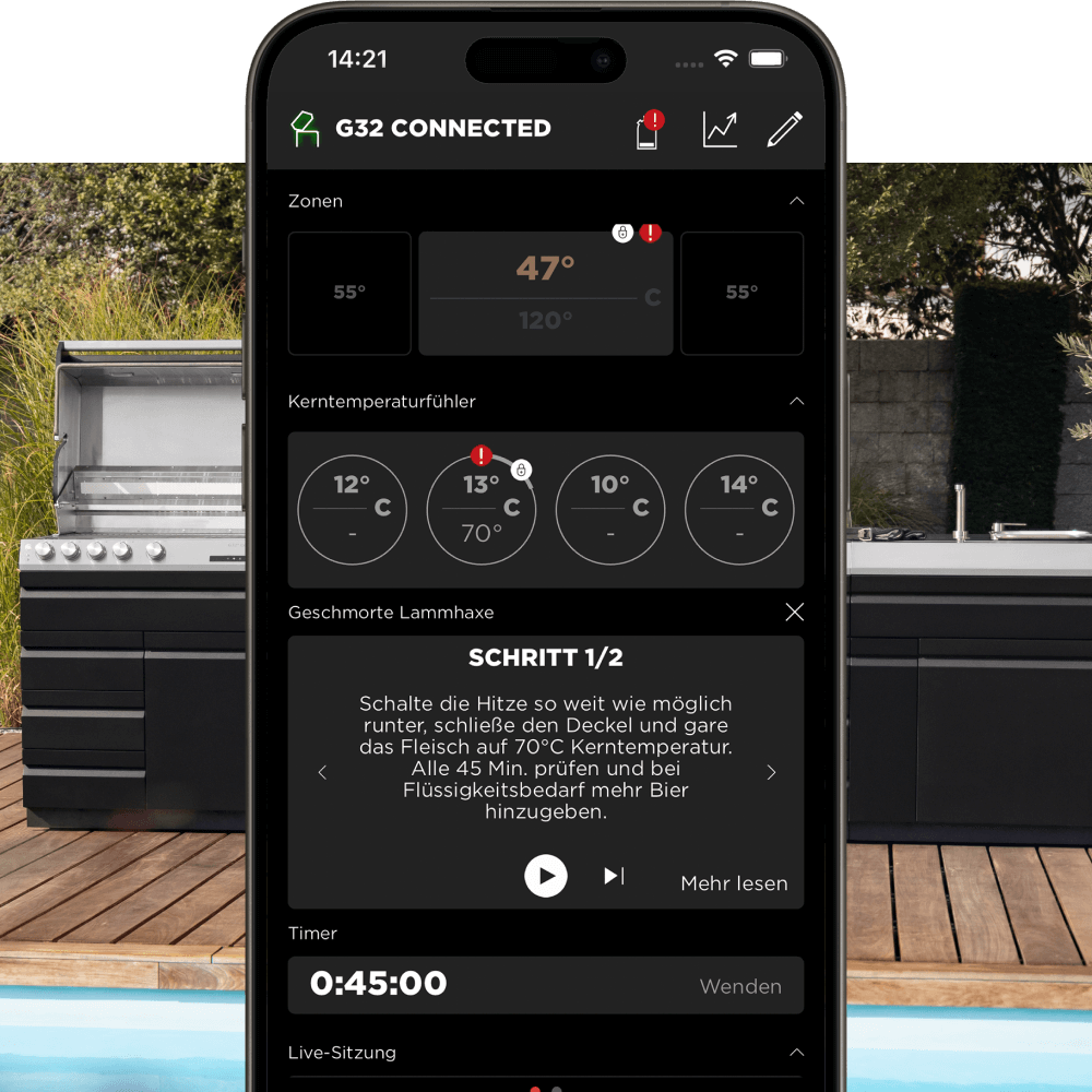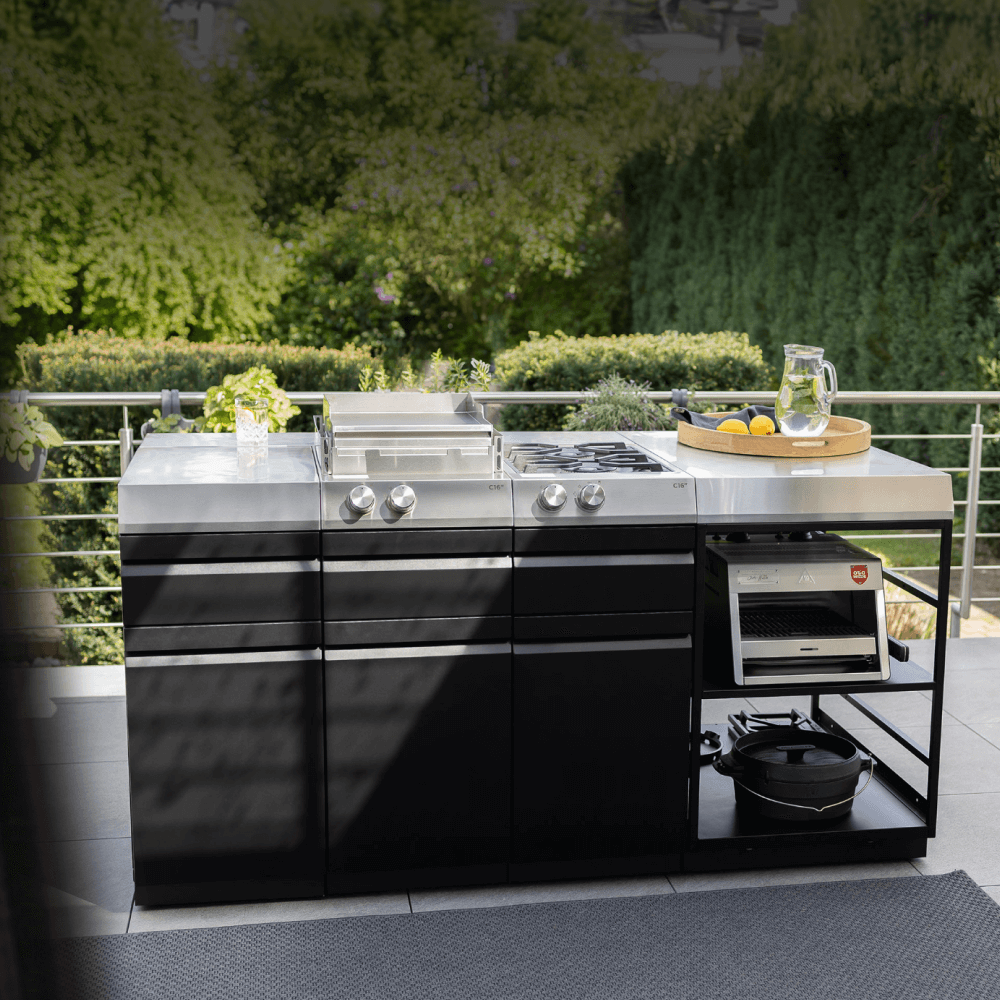 The new 3D configurator sets new standards: customers can design their outdoor kitchen completely according to their ideas. From the grill to the kitchen island - every element can be freely placed, adjusted and combined as desired. Configurations can also be saved and shared via a link, which makes the planning process even easier.