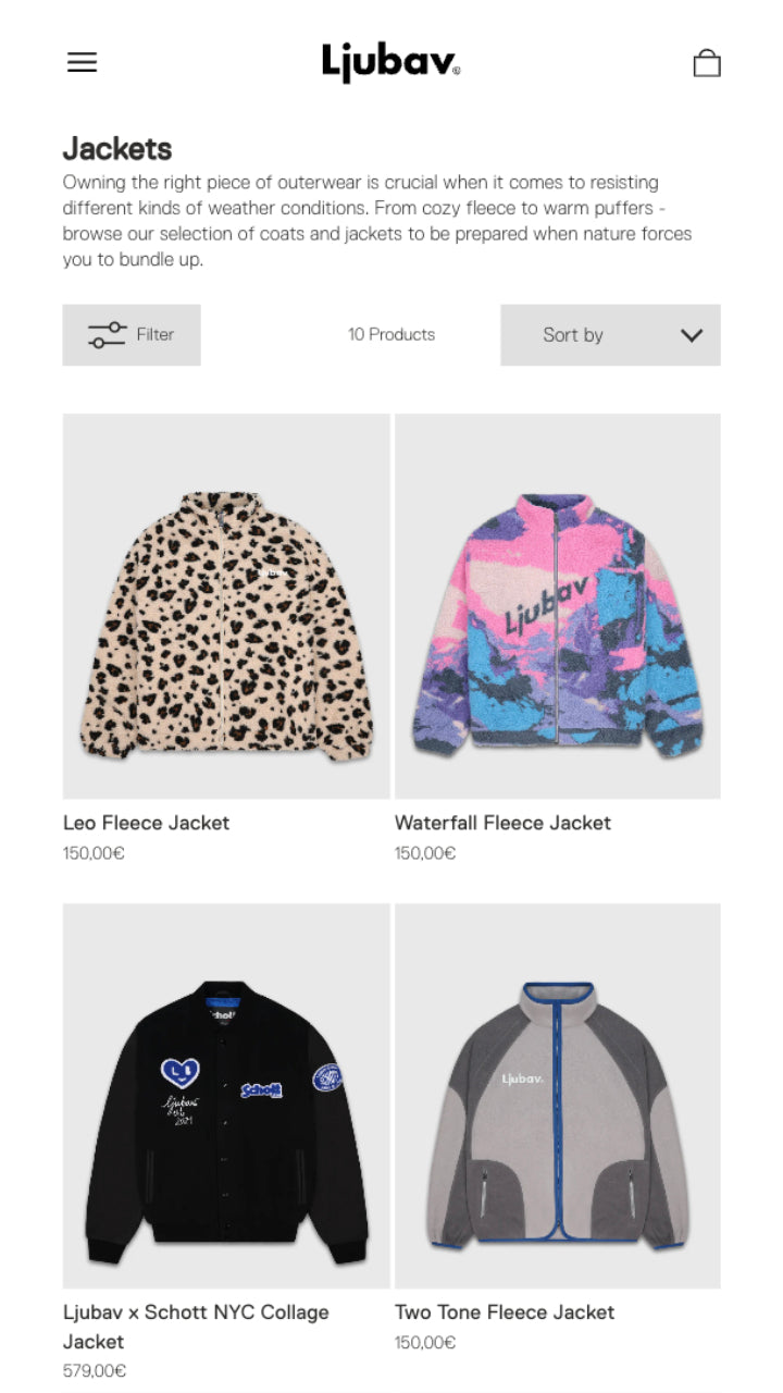 Der neue Shopify Shop spiegelt den Lifestyle von LJUBAV wider – visuell stark, technisch präzise und auf maximale Flexibilität ausgelegt. Besonders für die heiß begehrten Kollaborationen ist eine reibungslose User Experience entscheidend. In unserem Client Success Porgram arbeiten wir auch weiterhin mit LJUBAV zusammen und entwickeln den Shop kontinuierlich weiter, um optimal für zukünftiges Wachstum aufgestellt zu sein.